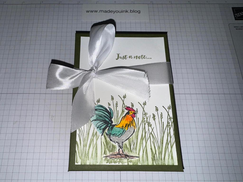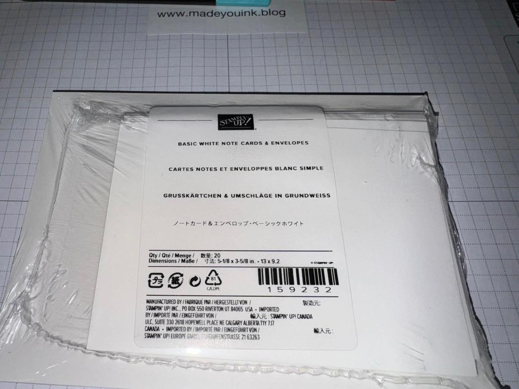 Box supplies needed: 2 pieces Cardstock, Tear Tape (don’t skimp on this, you’ll be sad when your things fall apart) https://www.stampinup.com/products/tear-tape-adhesive?demoid=2311688, ribbon (any for this project), Basic White Note Cards & Envelopes https://www.stampinup.com/products/basic-white-note-cards-envelopes?demoid=2311688 These are not your average notecards, they are smaller and have matching envelopes and they are thicker than standard cardstock (important if you’re trying to keep it to one layer).