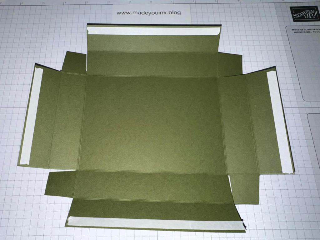 Then you’ll fold in the tabs and add Tear Tape to the underside of the flaps.